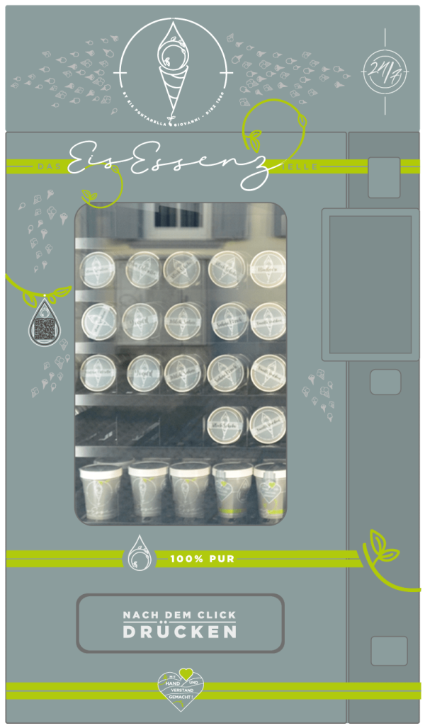 3° Möglichkeit: Während eines Spaziergangs einfach dem Automaten entnehmen und mit dem Genießen gleich los legen, sobald die Eis-Essenz spachtelbar ist. – Der ideale Zeitpunkt ist von der Außentemperatur abhängig.