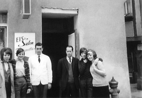 Unsere Eiskunst haben Oma Concetta, Opa Giovanni und sein Bruder Galliano gemeinsam im Jahre 1960 in Diez begonnen. Damals gab es erstaunlicherweise 11 Eissorten, 5 Eisbecher, Schlagsahne und 2 Getränke zur Auswahl. Das wars! Das reichte! Ach so, Moment ... und es gab natürlich auch Zigaretten! Viele Zigaretten. Ja, es lagen Rauchwolken über den Köpfen im großen Saal, aber das war kein Problem, solange aus der Jukebox Musik kam – stundenlang und mit voller Lautstärke – und so den Rauch wegpustete. (So die Mode der Zeit).