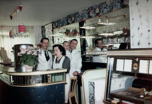 Nach der schweren Arbeit machte man sich frisch und weiter ging es damit, das Eis den Leuten zu servieren, ihnen jegliche Wünsche von den Lippen zu lesen und manchmal eine etwas übertriebene, freundliche Show zu veranstalten. Das war halt damals der Zeitgeist während des Wirtschaftswachstums.